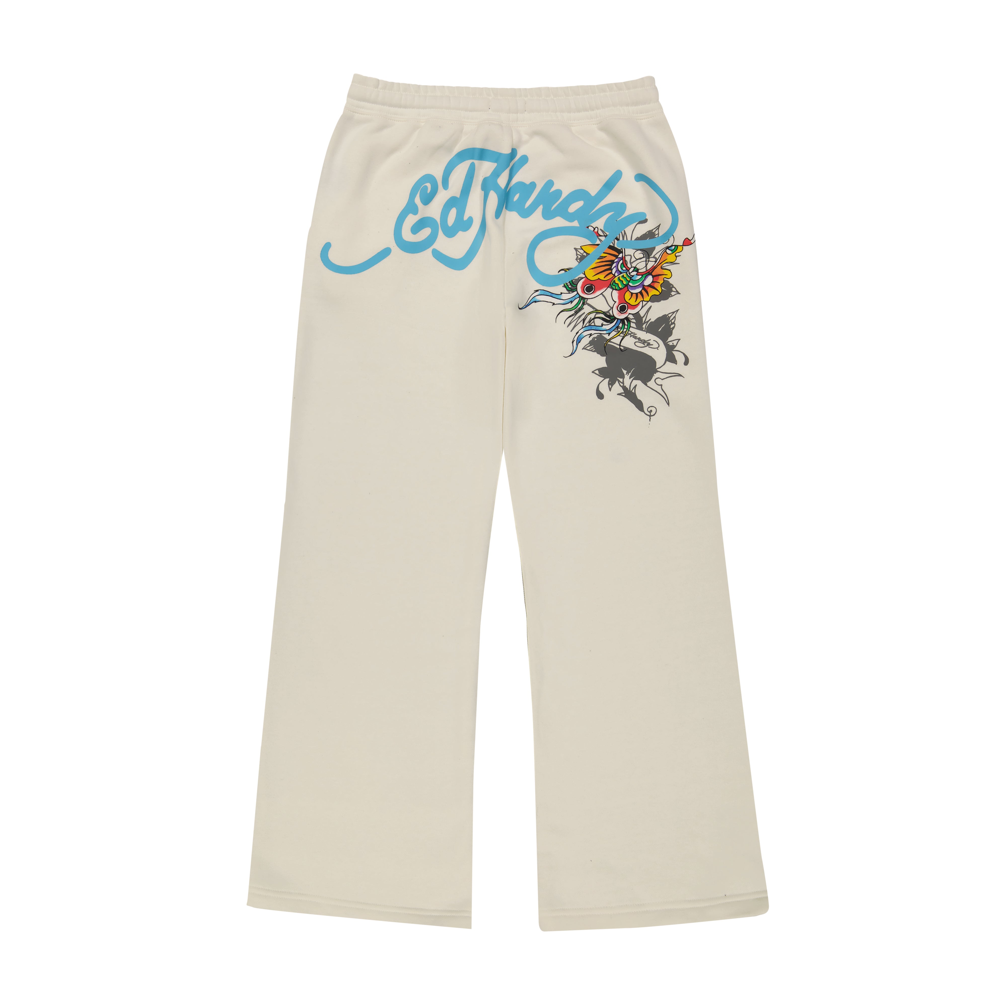 Ed Hardy’s fleece sets add a modern twist to the styles that reigned in the early 2000’s . These wide leg sweatpants are complete with signature butterfly graphics