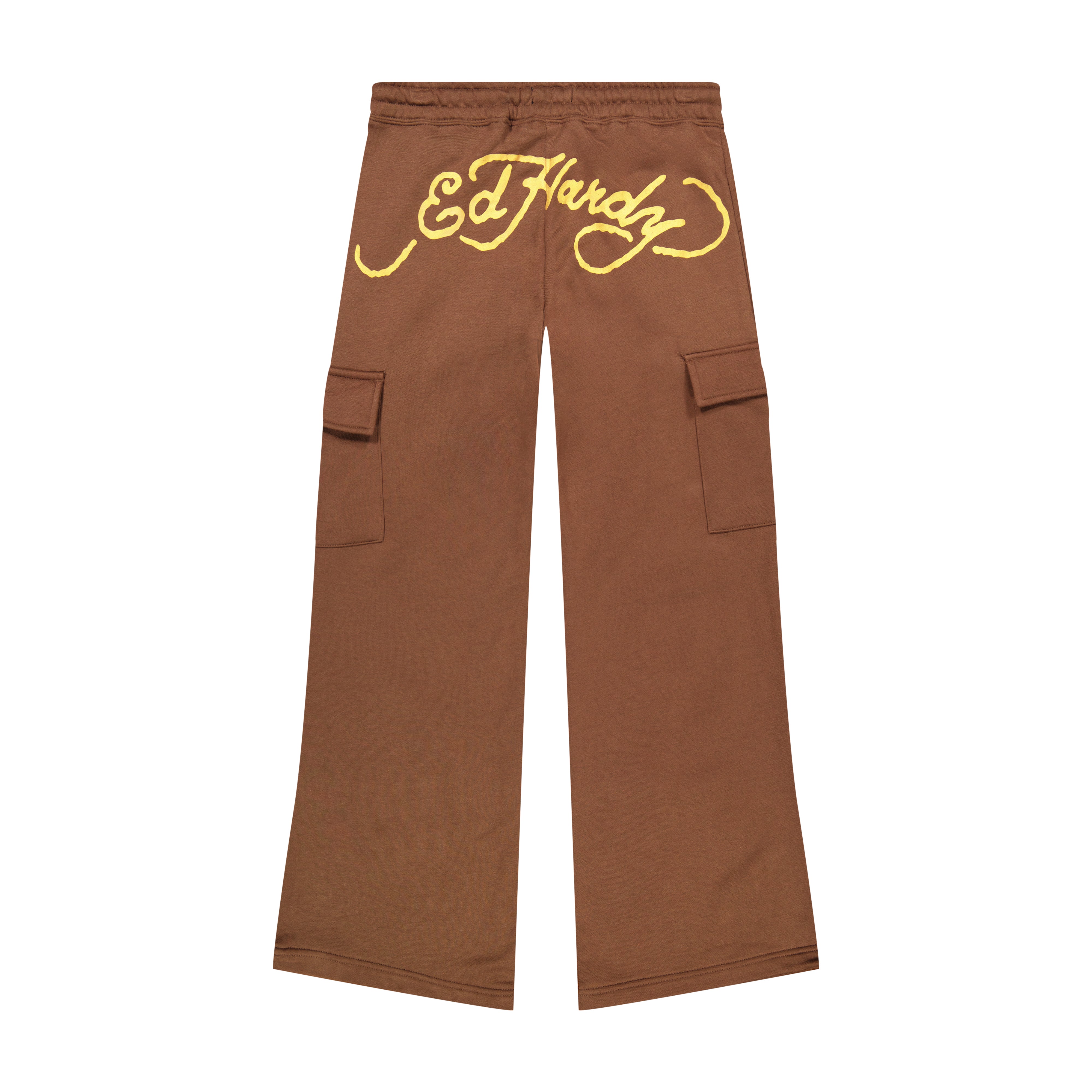 Ed Hardy’s fleece sets add a modern twist to the styles that reigned in the early 2000’s . These wide leg cargo sweatpants are complete with a signature koi fish graphic.