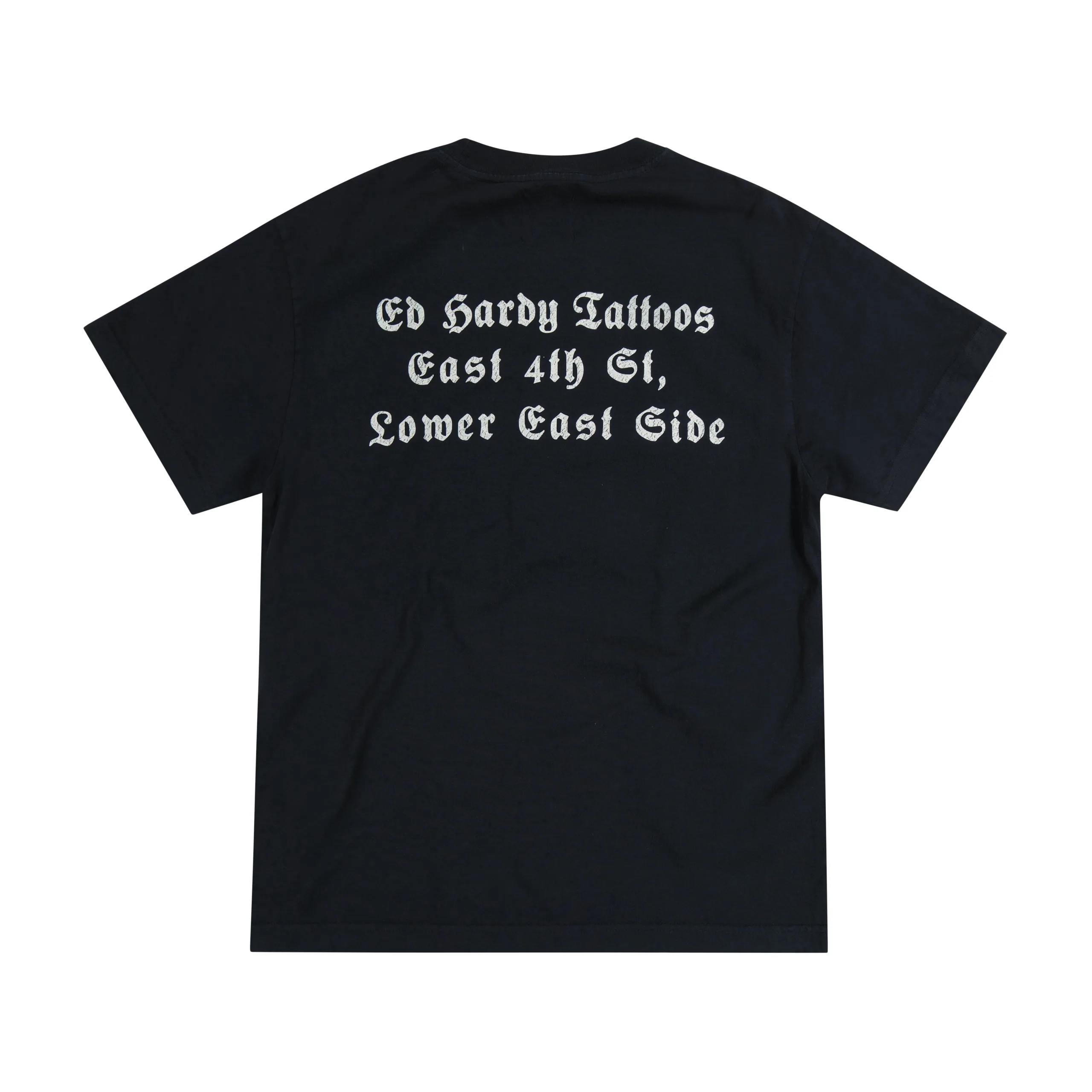 Limited Edition luxury tee crafted from 100% heavy weight cotton. Features iconic archival Don Ed Hardy artwork, signature logo in red, and rhinestone embellishments.