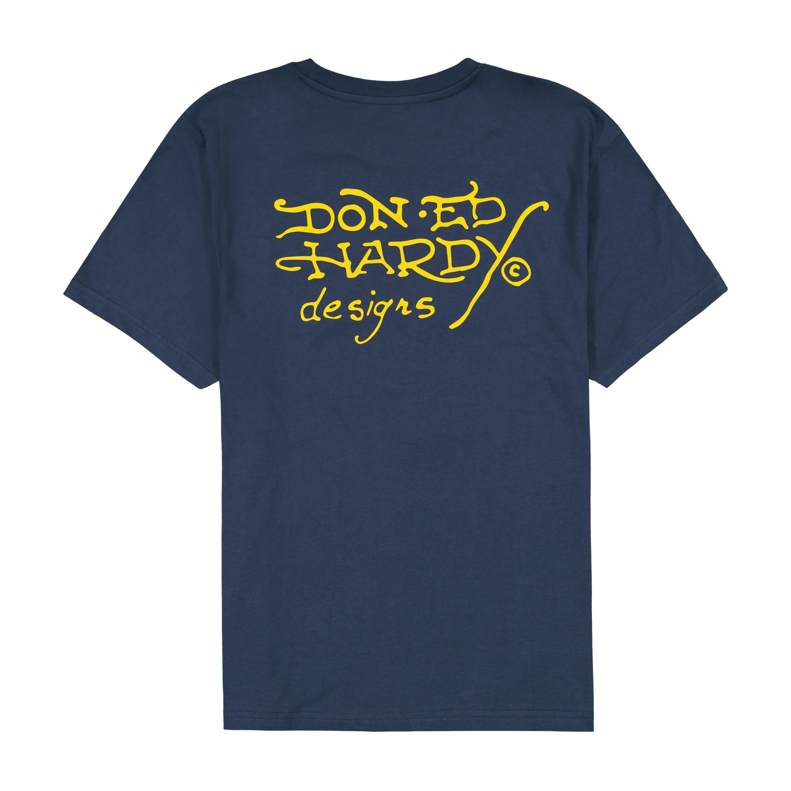 This t-shirt is cut in a regular fit and constructed from a soft cotton blend. Complete with an Ed Hardy Love Skull graphic and two archival blue logos.
