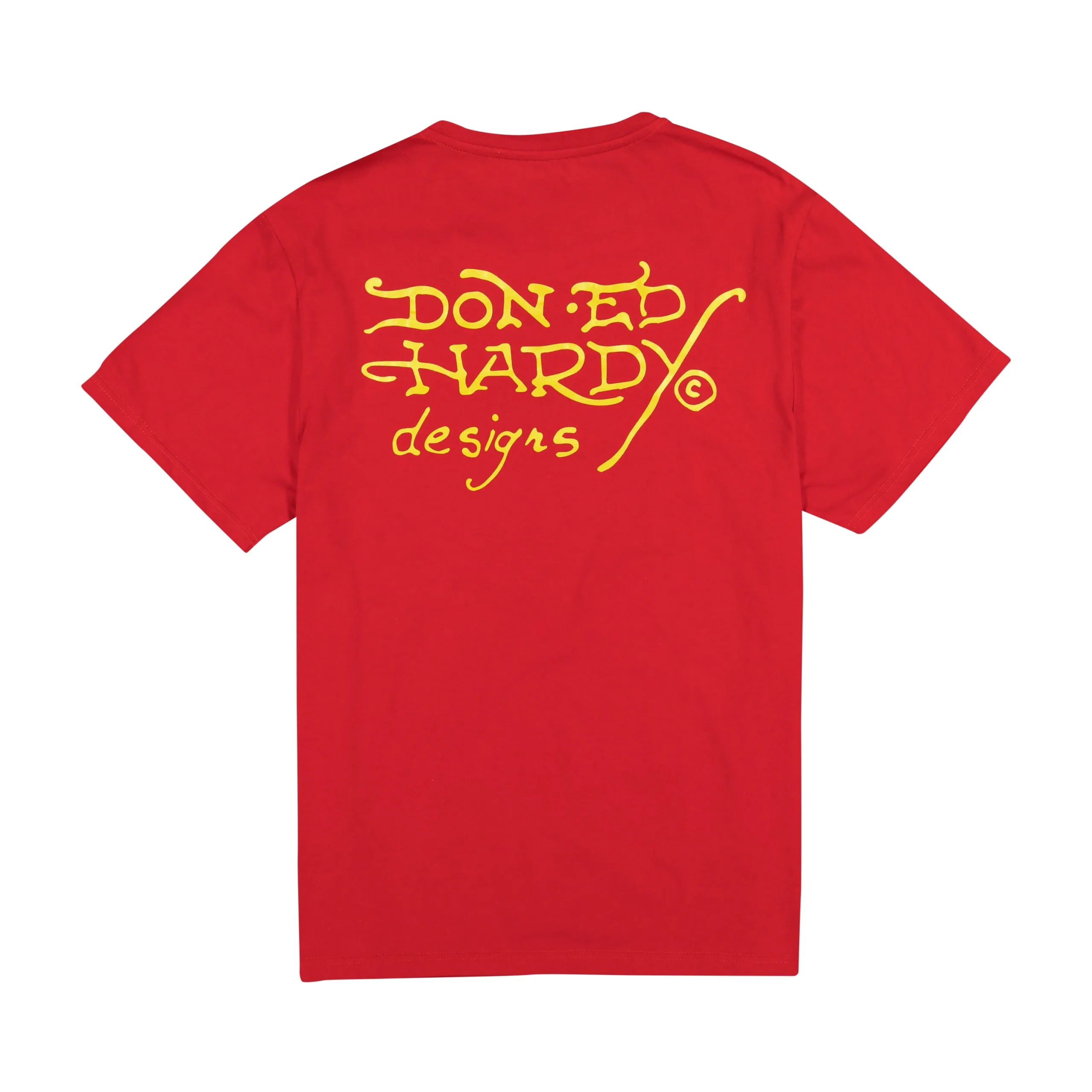 This t-shirt is cut in a regular fit and constructed from a soft cotton blend. Complete with an Ed Hardy DBD Eagle graphic and two archival gold logos